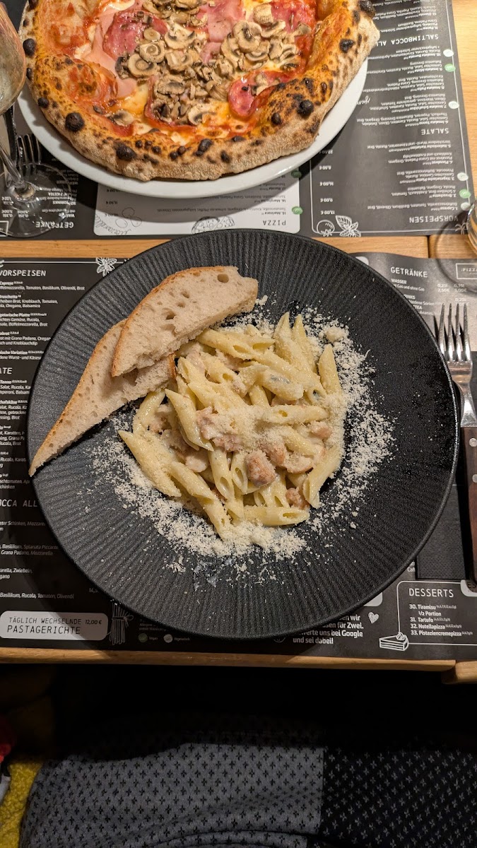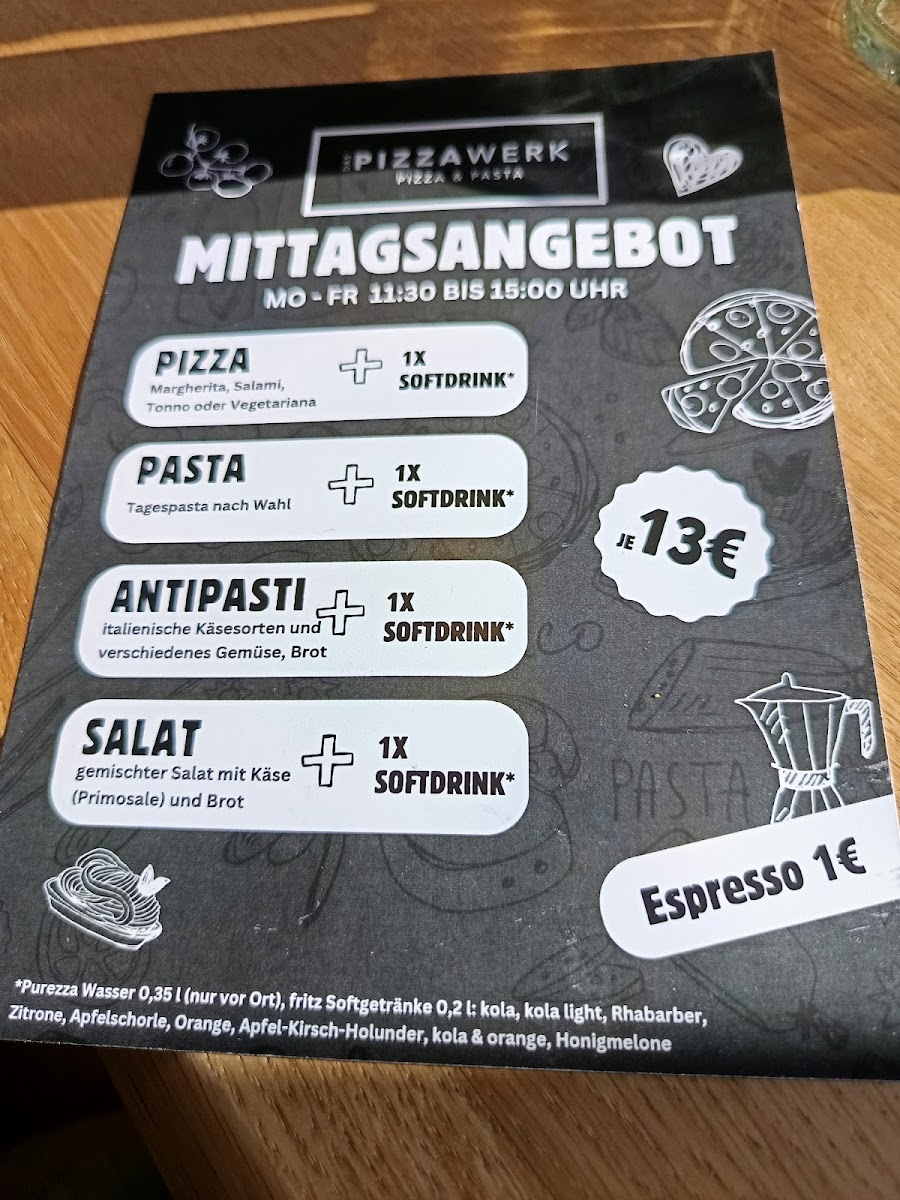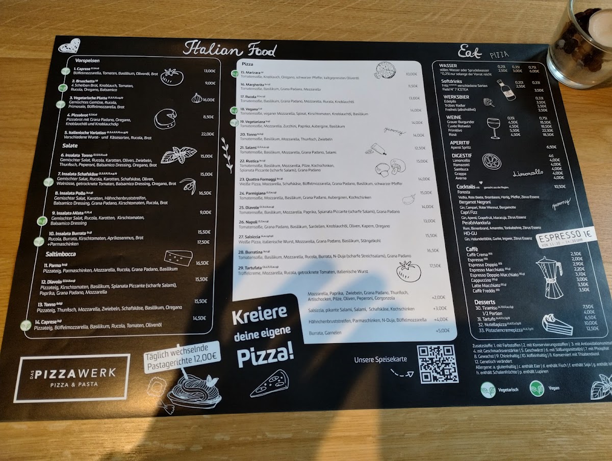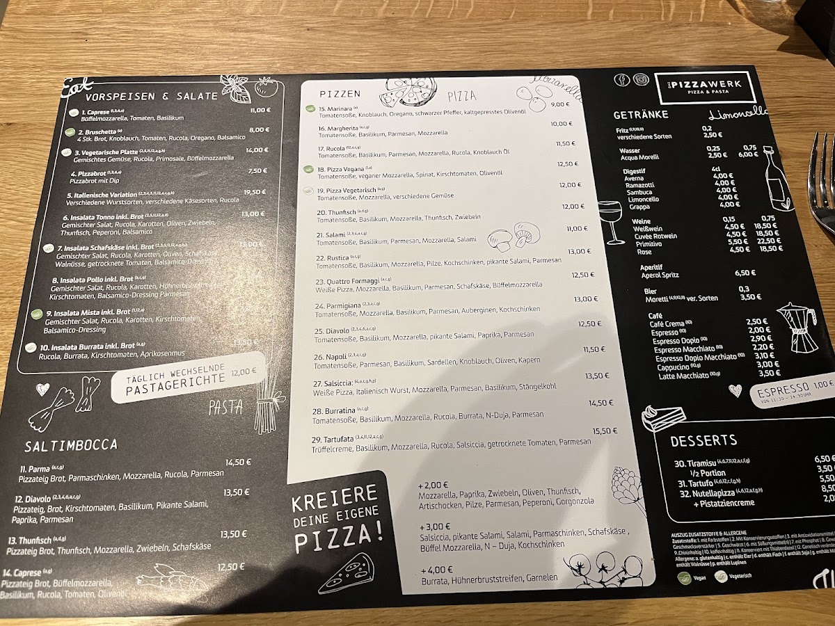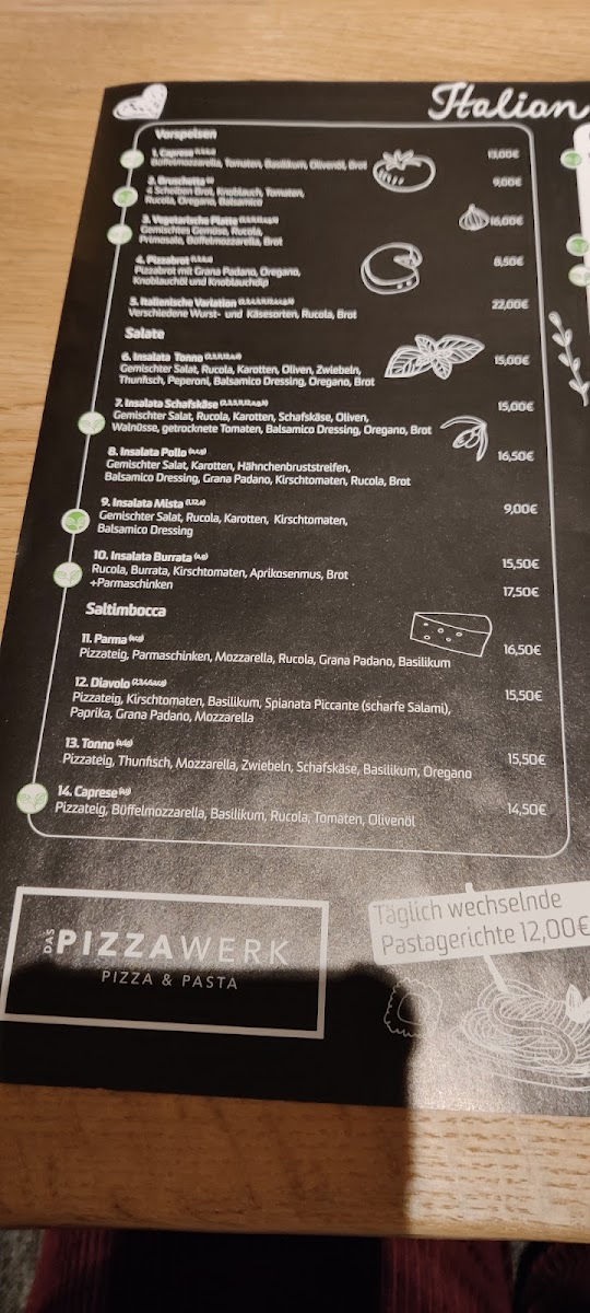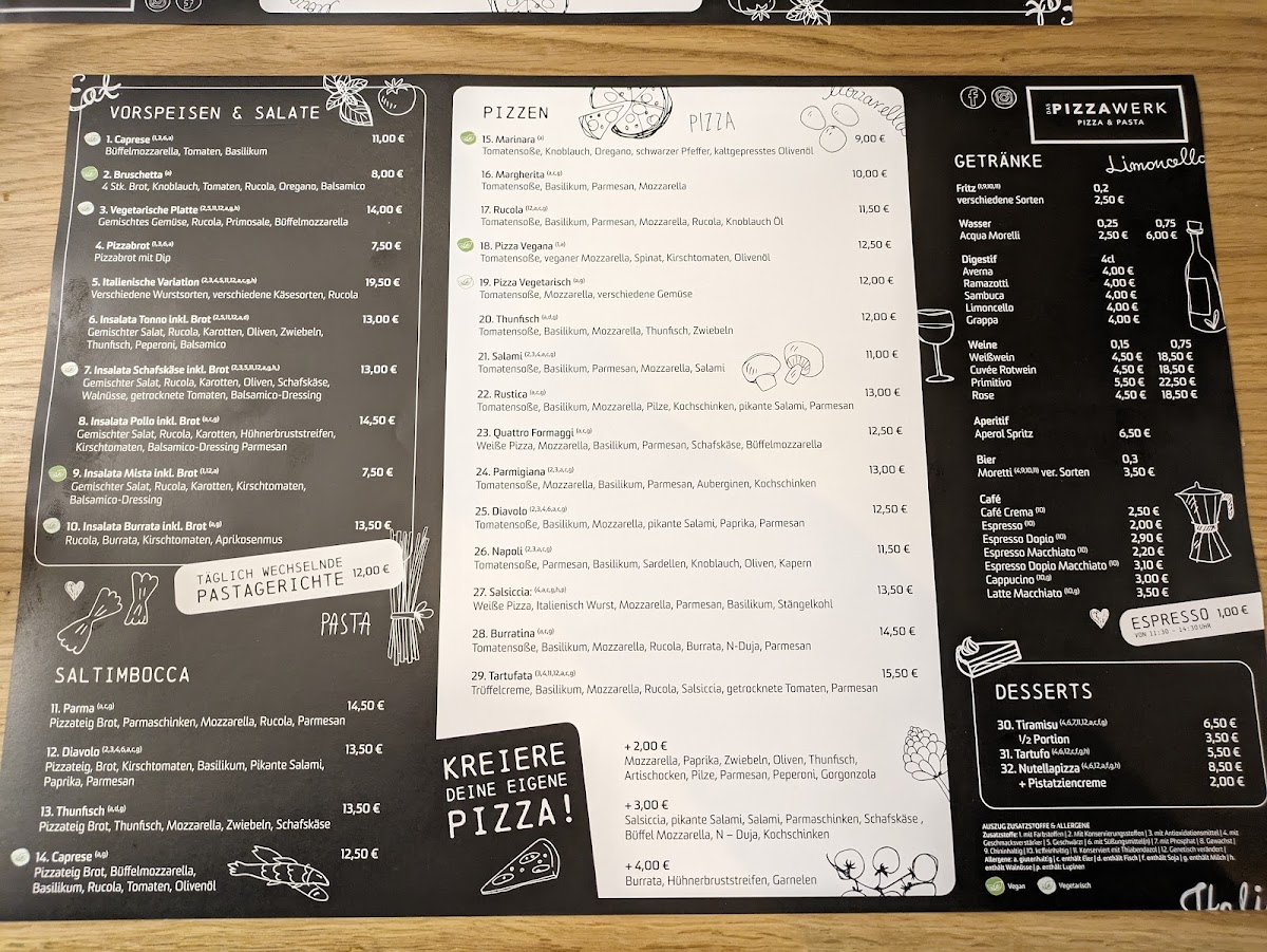 The cozy atmosphere invites diners to enjoy their meals indoors or on the charming terrace, making it a perfect spot, especially in summer. What sets Das Pizzawerk apart is not just its food but its approachable service; patrons love the swift attention and the inviting nature of the staff. Additionally, the innovative dessert options, including half-sized tiramisu, cater to those who want a sweet finish without the guilt of overindulgence. For an unmissable experience, try the Rustica pizza with extra artichokes, and indulge in the burrata salad for a truly satisfying meal.